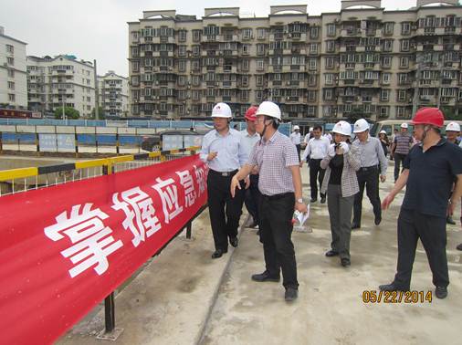 2014年5月22日,漢陽區(qū)區(qū)委書記曹裕江一行在區(qū)政協(xié)主席張本滿、建設(shè)局局長嚴(yán)悌文的陪同下視察了武漢軌道交通四號線二期八標(biāo)地鐵項目部的建設(shè)、施工情況,并對項目建設(shè)的相關(guān)細(xì)節(jié)工作作出了進(jìn)一步的指示。
