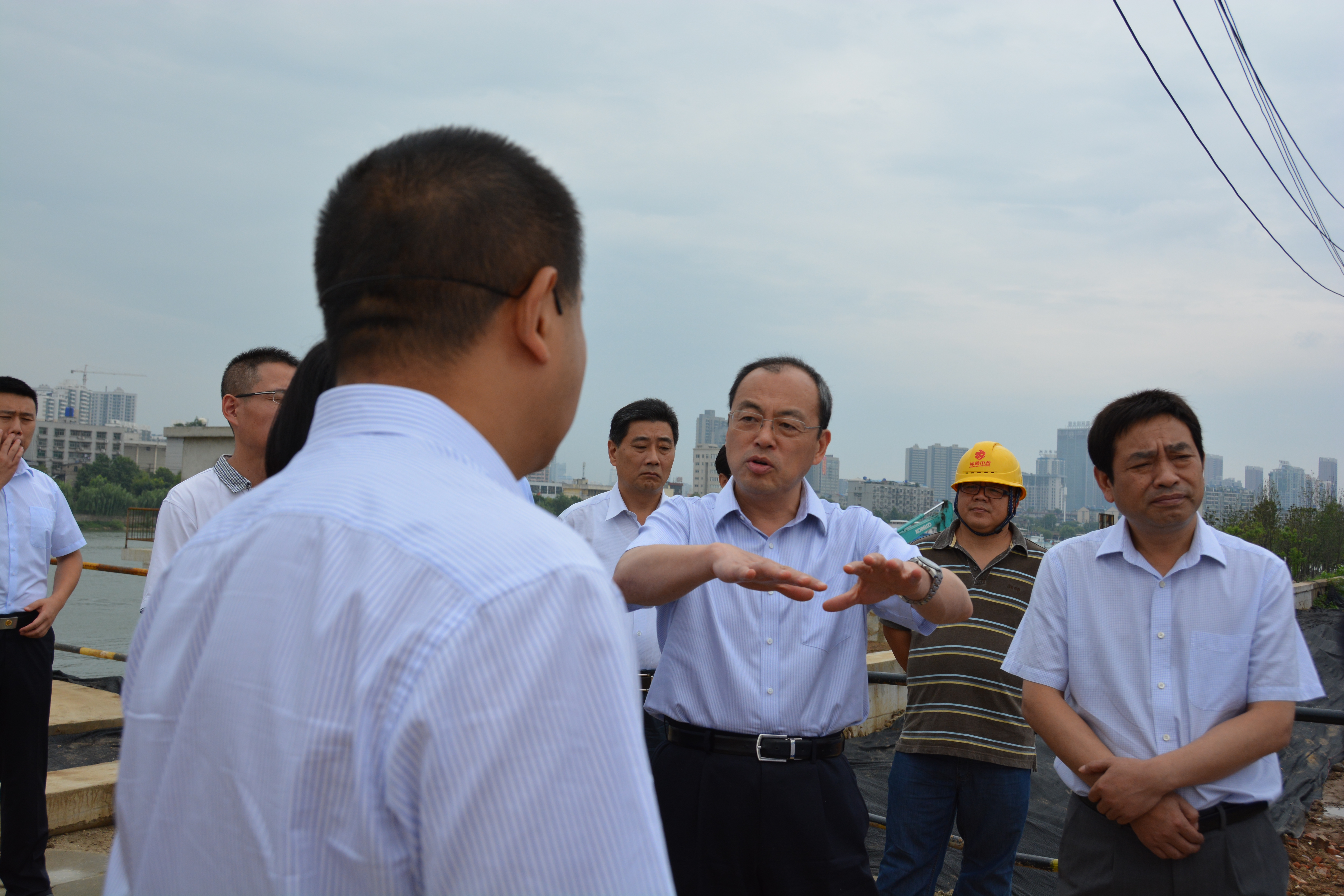 7月6日上午,省委常委、市委書記阮成發(fā)率隊(duì)檢查全市防汛抗旱工作,其中一站就是由鐘鑫公司承建的漢鋼西泵站工程。