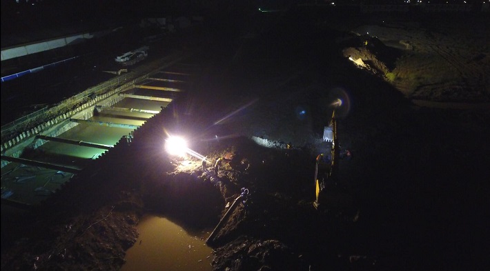 4月以來,武漢普降大雨,漢陽市政承建的夾套河骨干箱涵工程由于地勢較低,近日以來積水嚴(yán)重,二標(biāo)項(xiàng)目經(jīng)理付曉陽發(fā)現(xiàn)險(xiǎn)情后,第一時(shí)間向公司領(lǐng)導(dǎo)匯報(bào)了險(xiǎn)情,并動(dòng)員項(xiàng)目部所有工作人員,迅速組織該工地所有機(jī)械到一線,全天24小時(shí)進(jìn)行明渠開挖導(dǎo)流工作,確保當(dāng)?shù)鼐用竦纳畈辉偈軡n水的困擾。