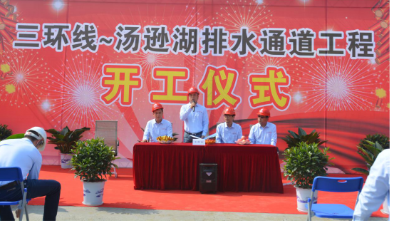 開工典禮儀式在9點18分正式啟動,漢陽市政四公司項目經(jīng)理劉小勇正式宣布工程開工。漢陽市政四公司總經(jīng)理涂軼銘致辭。涂軼銘在致辭中表示,本次三環(huán)線-湯遜湖排水通道工程是武漢市“四水共治”建設(shè)工程的一大重點,也是武漢市排水惠民民生工程的重要一站,業(yè)主武漢地鐵集團(tuán)高度重視,對工程的招標(biāo)要求極高,從20余家投標(biāo)單位中精心篩選出最合適的單位,對此項工程高度負(fù)責(zé)。涂軼銘表示,本次排水通道工程是漢陽市政繼中標(biāo)夾套河骨干箱涵工程后在水務(wù)市場的再一次“蝶變”,漢陽市政將牢記企業(yè)“誠實、信譽(yù)、優(yōu)質(zhì)、創(chuàng)新”的精神,以鐵的意志、鐵的制度、鐵的紀(jì)律和鐵的執(zhí)行力,竭盡全力,精心準(zhǔn)備,謹(jǐn)記質(zhì)量安全文明生產(chǎn)理念,提高施工技術(shù)和管理水平,六個月后如期向業(yè)主交付一份滿意的答卷。