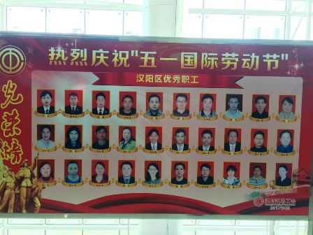 (圖為漢陽區(qū)勞動表彰榮譽墻,第一排左起第四位為付曉陽同志)