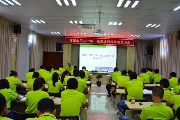 8月18日下午14:30,鐘鑫公司2017年一級(jí)建造師考前動(dòng)員大會(huì)在公司大會(huì)議室召開。出席本次大會(huì)的有鐘鑫公司董事長(zhǎng)方紫微,總工程師汪定國(guó)和總經(jīng)理助理林光洪,各職能部門負(fù)責(zé)人和各項(xiàng)目經(jīng)理以及一建報(bào)考人員總計(jì)60人。會(huì)議由方紫微主持。