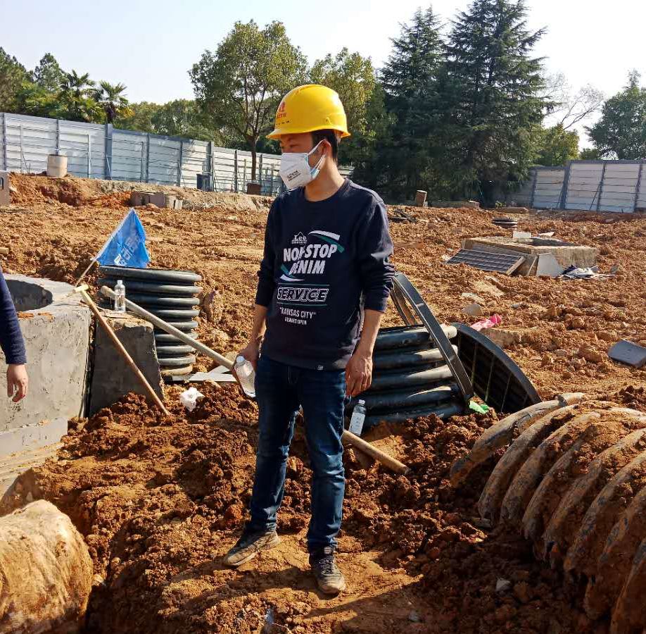 在火神山現(xiàn)場,他主要負(fù)責(zé)土方施工、強(qiáng)弱電施工以及后勤保障管理工作?,F(xiàn)場施工時間緊,任務(wù)量大,交叉作業(yè)多,協(xié)調(diào)量大,當(dāng)被問到:“在這種情況下,是如何完成現(xiàn)場土方施工4萬方,強(qiáng)弱電管道施工2900米,防滲膜施工2.5萬平米時”,略帶靦腆的李衛(wèi)民說到:“這都是大家齊心協(xié)力的結(jié)果,一個人的力量有限,但我們擰成一捆繩,就沒有什么困難能難倒我們”。雖然現(xiàn)場困難多,但最讓他揪心的莫過于隊員們的安全問題,他說:“這次籌建是上級交給我們的“考試”,只有隊員們都安全,我們才能順利“交卷””,項目現(xiàn)場,他時刻做好工人們的心理疏導(dǎo),引導(dǎo)他們克服困難,時刻提醒他們消毒、佩戴口罩,保障他們的后勤需要,“只有這樣,我們才能按時保質(zhì)保量完成任務(wù)?!彪m然項目現(xiàn)場施工實行24小時兩班倒,連續(xù)作業(yè),但為保障施工順利進(jìn)行,他連續(xù)三天沒有休息過,實在困了,就隨地趴一下,醒了,又繼續(xù)奮斗。他說:“疫情不等人,我們只有爭分奪秒,和病毒賽跑,和時間賽跑,跑到他們前面,我們才能贏。”