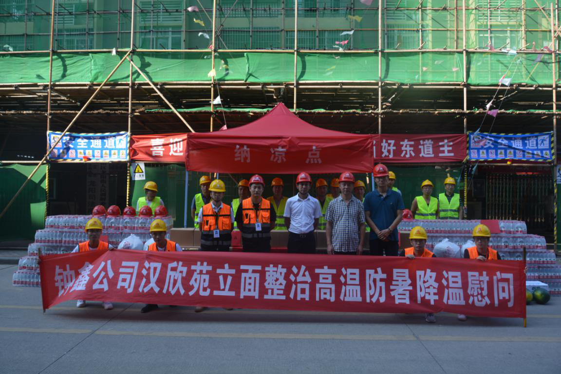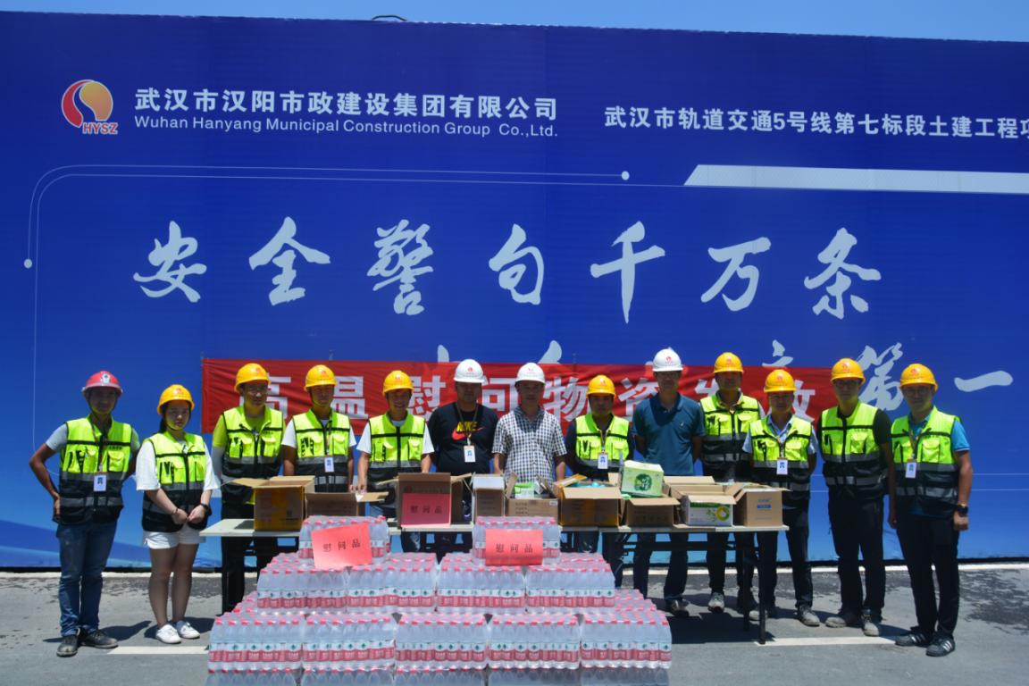 ? ? 酷暑來襲!近日,武漢頻頻發(fā)布高溫橙色預警,天氣炎熱干燥,公司領導十分牽掛一線作業(yè)人員的健康安全。為做好防暑降溫工作,加強高溫天氣下勞動作業(yè)保護,2019年7月26日上午,鐘鑫公司董事長曹元鑫、總經(jīng)理盧永紅、副總經(jīng)理徐浩以及工會主席肖艷霞一行來到月亮灣城市陽臺、5.7標等項目部開展了高溫慰問活動,為他們送去了礦泉水、****、綠豆、酸梅膏以及藥品等防暑降溫用品,給一線員工送去了陣陣“清涼”。