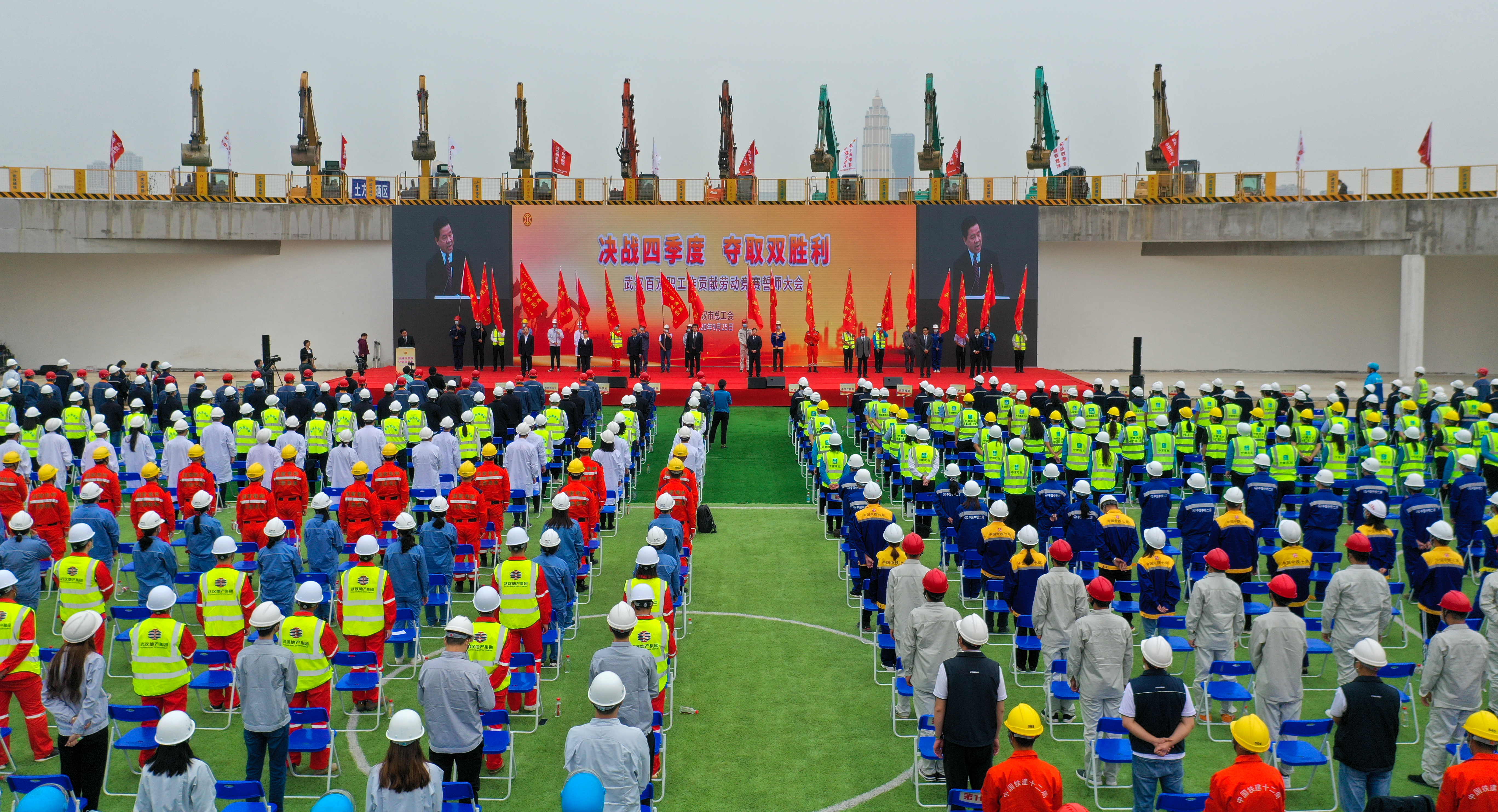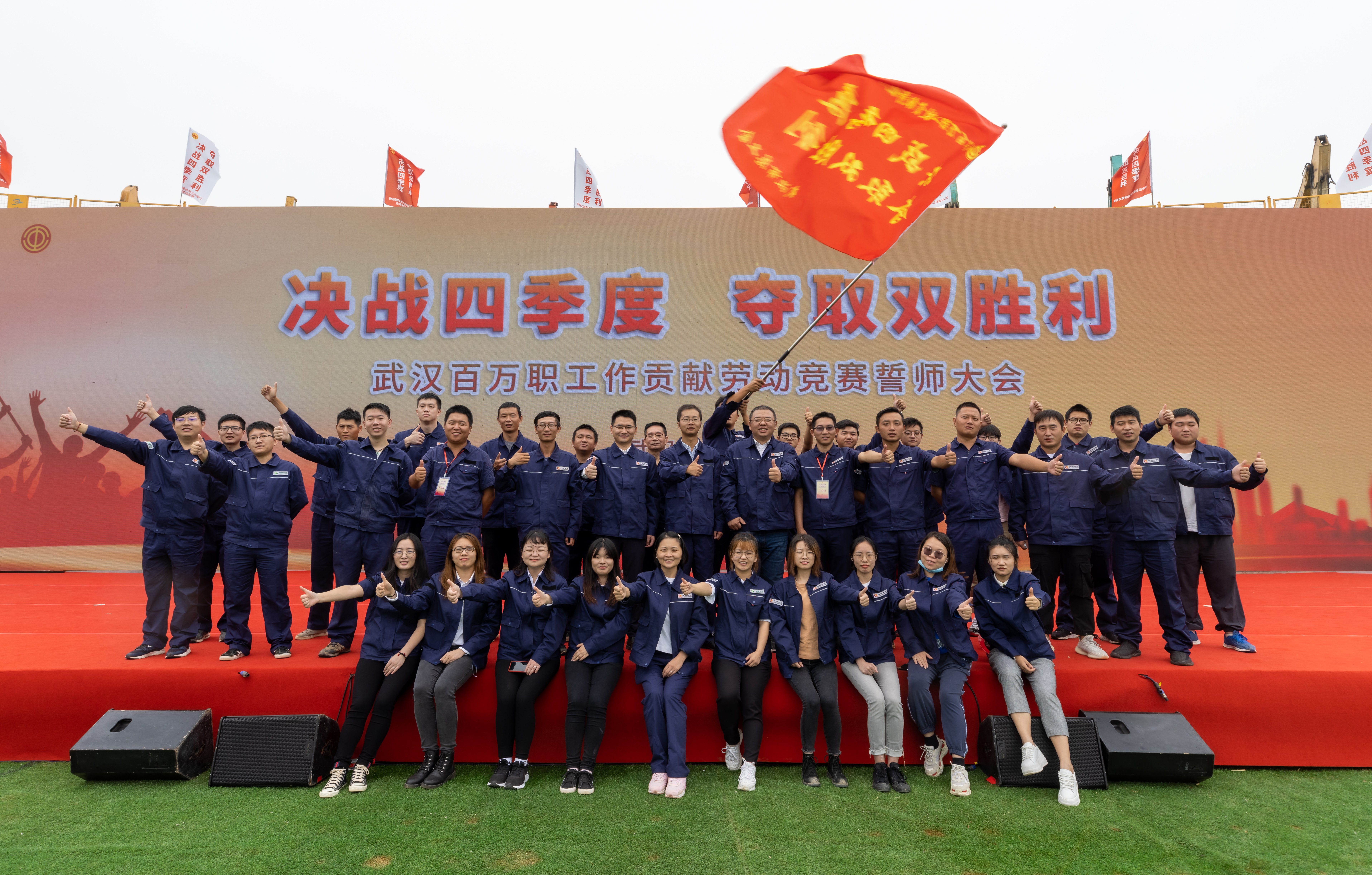 武漢,曾是新冠肺炎疫情的“風暴眼”,如今成為中國經(jīng)濟疫后重振的風向標。在全市深入貫徹學習習近平總書記在全國抗擊新冠肺炎疫情表彰大會上的重要精神講話,大力弘揚偉大抗疫精神,奮力打造“疫后重振武漢樣板”的關(guān)鍵時刻,9月25日上午,以“決戰(zhàn)四季度、奪取雙勝利、武漢百萬職工作貢獻”為主題的勞動競賽誓師大會在全市重點工程工地——漢陽市政月亮灣城市陽臺項目隆重舉行,以建筑行業(yè)為代表的20余個行業(yè),190家單位,700余名一線建筑勞動者齊聚大會現(xiàn)場,共同見證武漢復(fù)工復(fù)產(chǎn)后大干快趕、比拼趕超勞動盛況。