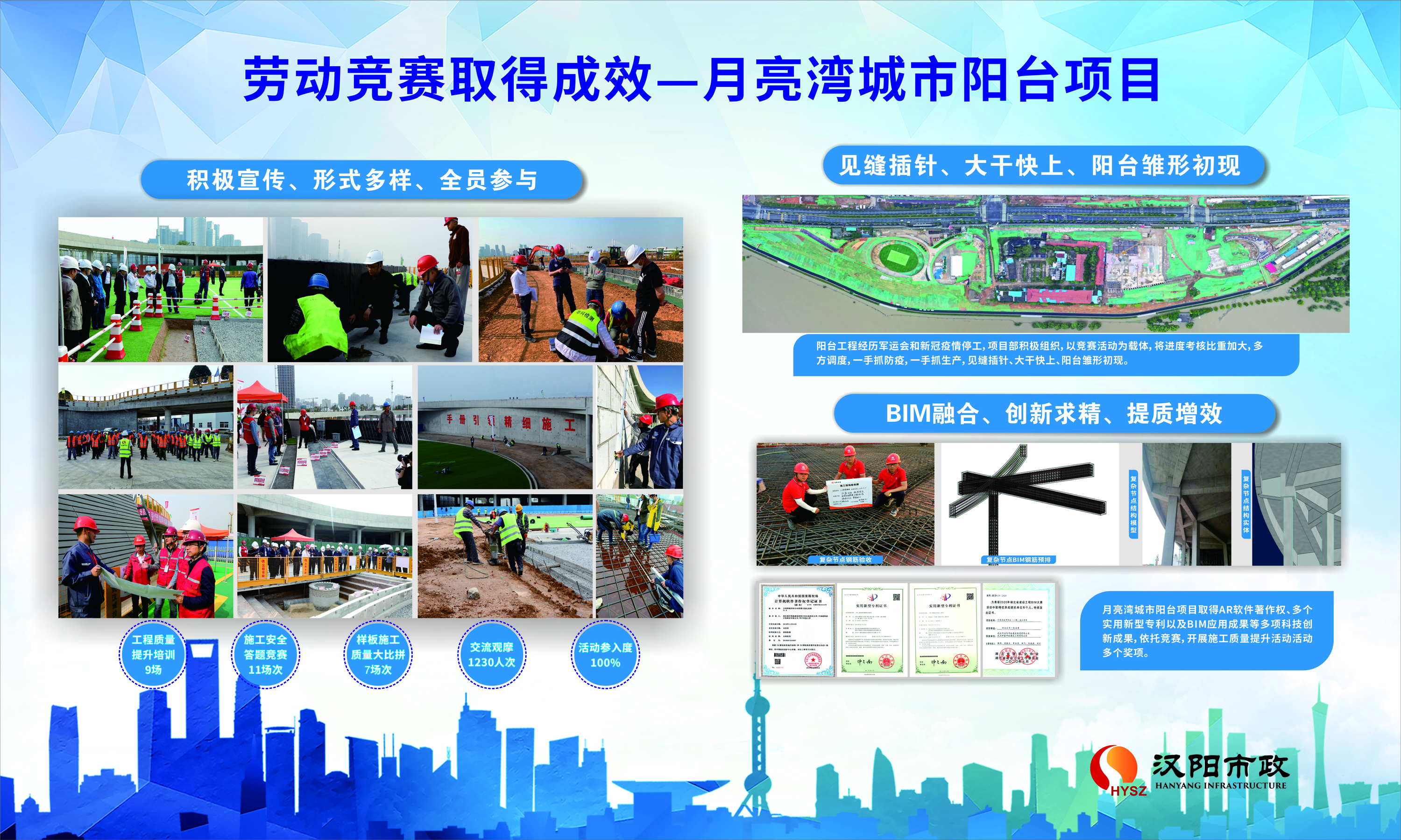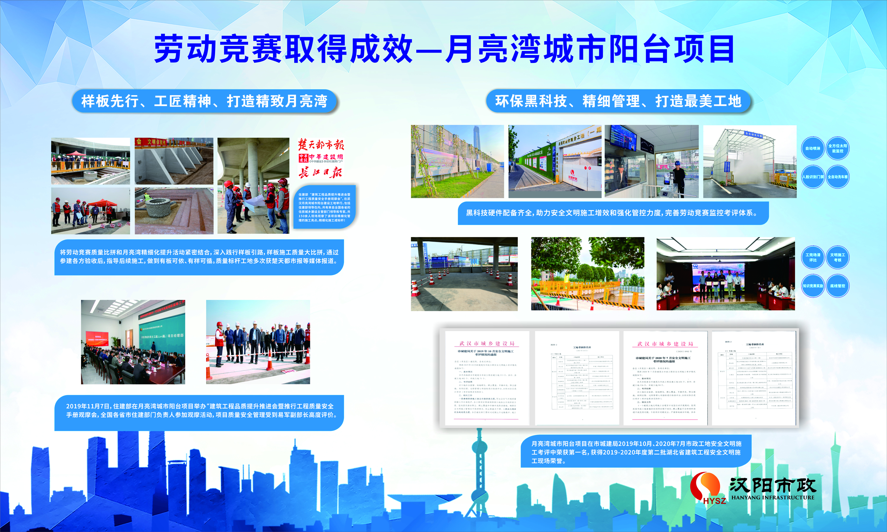 漢陽市政鐘鑫公司承建的月亮灣城市陽臺(一期)工程位于武昌濱江商務(wù)區(qū)核心節(jié)點區(qū)域月亮灣地區(qū),是武漢市唯一擁有天然地勢優(yōu)勢的城市開放空間,該項目一期工程分為平臺景觀和平臺層建設(shè)兩部分,平臺景觀面積約12.46萬平方米,包括綠地景觀、鋪裝廣場、水體景觀、景觀構(gòu)筑物等;平臺層以下建筑總面積約4.99萬平方米,包括配套用房、停車場等。