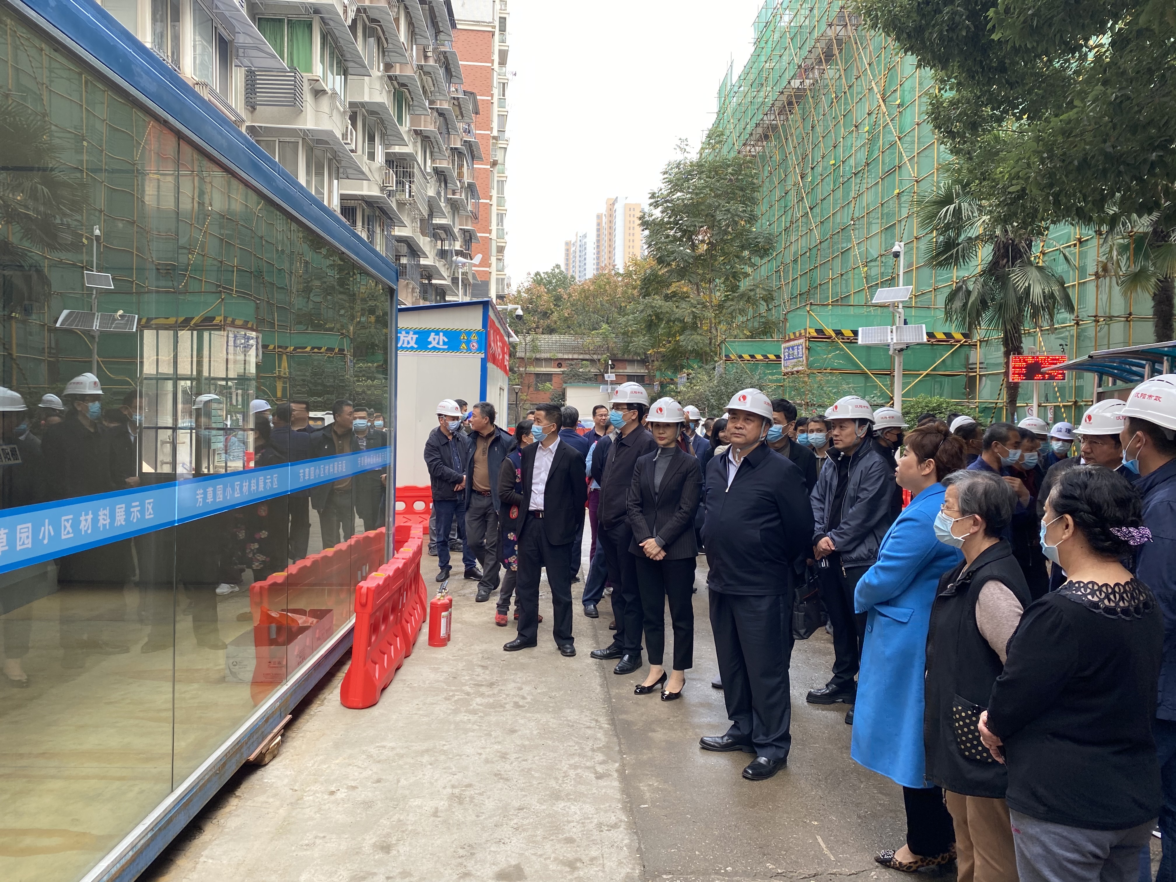 為深入貫徹中央、省、市有關(guān)老舊小區(qū)改造工作的決策部署,全面推進(jìn)2020年老舊小區(qū)改造任務(wù),11月16日下午,武漢市副市長(zhǎng)張文彤,漢陽(yáng)區(qū)委書(shū)記徐麗,區(qū)委副書(shū)記、區(qū)政府代區(qū)長(zhǎng)范禮奎一行赴漢陽(yáng)市政鐘鑫公司承建的漢陽(yáng)區(qū)老舊小區(qū)改造(二期)工程芳草園小區(qū)現(xiàn)場(chǎng),進(jìn)行實(shí)地考察與觀摩,漢陽(yáng)市政總經(jīng)理虞志鵬、常務(wù)副總經(jīng)理王智高、鐘鑫公司董事長(zhǎng)陳俊俊陪同調(diào)研。
