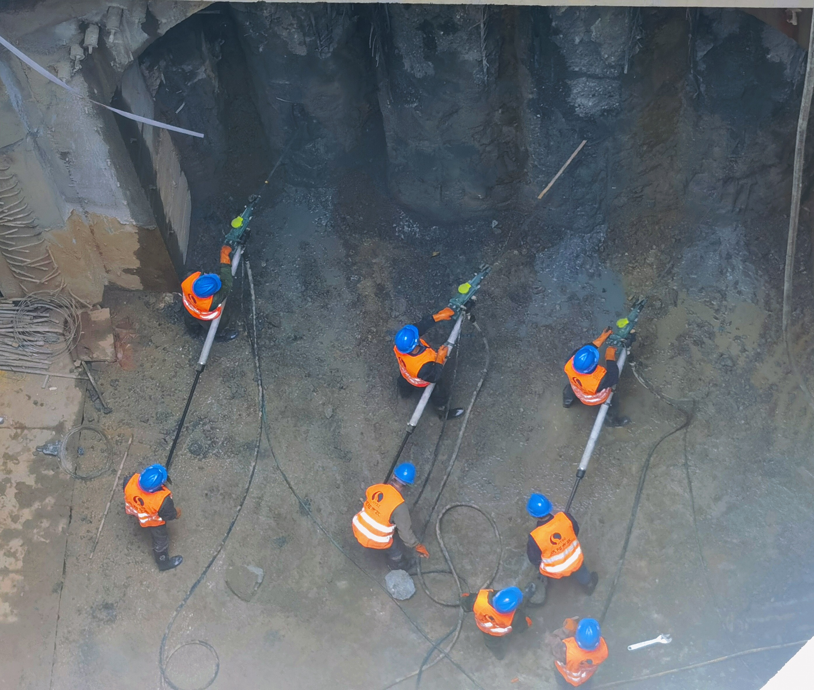 19.5標(biāo)項(xiàng)目是公司首次承接的礦山法施工隧道,也是漢陽(yáng)市政鐘鑫公司目前最大的單個(gè)地鐵項(xiàng)目,且地質(zhì)復(fù)雜,巖層較硬,每段線路間開(kāi)挖的方式均不同,較高的風(fēng)險(xiǎn)系數(shù)和較大的技術(shù)難度給項(xiàng)目團(tuán)隊(duì)帶來(lái)很大挑戰(zhàn)。為對(duì)項(xiàng)目施工進(jìn)行精準(zhǔn)把控,在策劃階段,公司對(duì)工程風(fēng)險(xiǎn)、總體籌劃、場(chǎng)地布置、人材機(jī)配置和技術(shù)重難點(diǎn)等提前分析預(yù)判并針對(duì)性編制施工方案;在具體施工過(guò)程中,項(xiàng)目團(tuán)隊(duì)嚴(yán)格遵循“管超前、嚴(yán)注漿、短進(jìn)尺、強(qiáng)支護(hù)、緊封閉、勤量測(cè)”的十八字方針,對(duì)現(xiàn)場(chǎng)實(shí)行統(tǒng)一領(lǐng)導(dǎo)、分級(jí)管理,為后續(xù)施工做充足準(zhǔn)備。