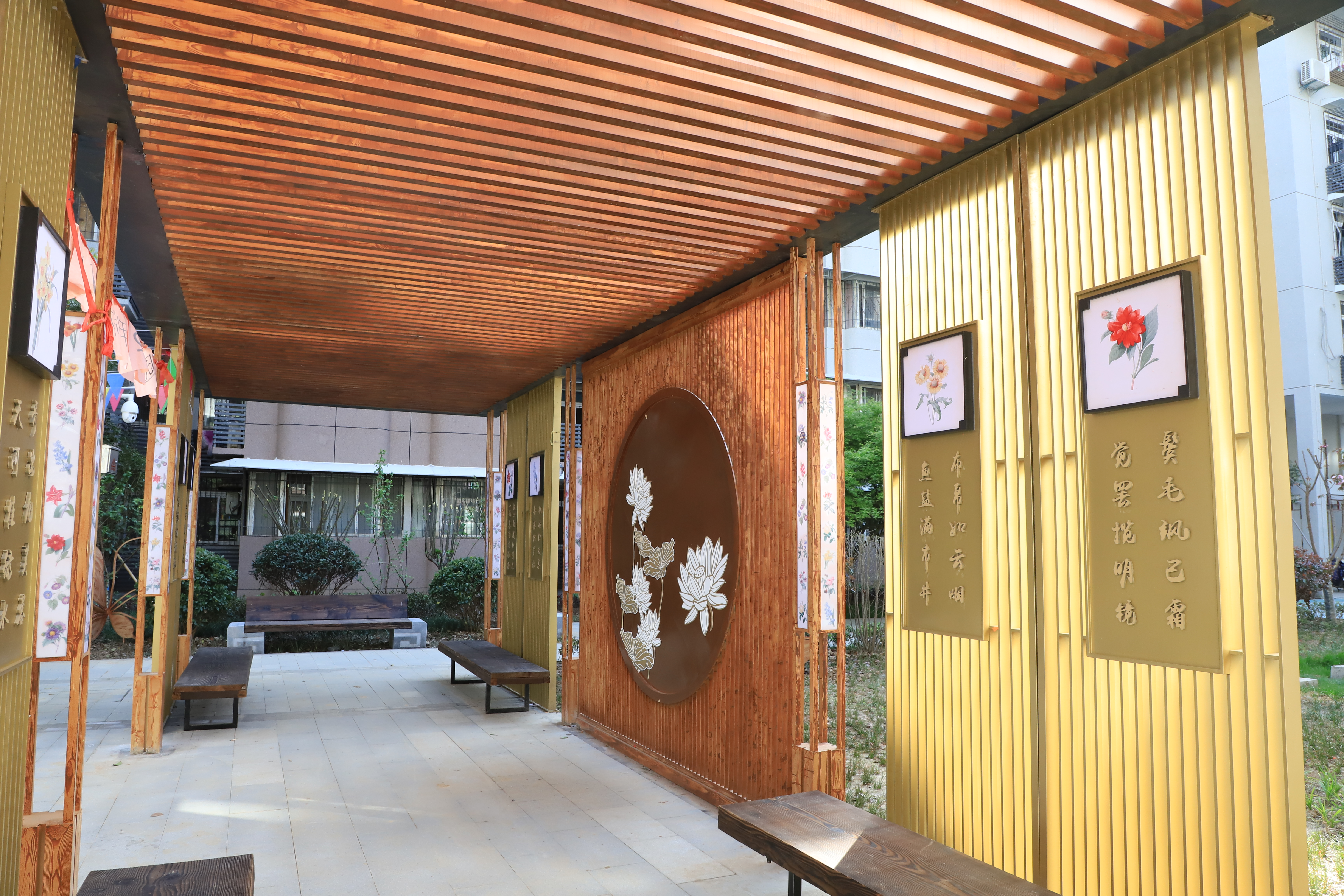 經(jīng)過半年改造,芳草園小區(qū)的施工任務(wù)已全部完成,小區(qū)整潔有序的環(huán)境讓人眼前一亮,更重要的是,徹底解決了改造前居民反映的屋頂、雨陽棚漏水,公共空間不足,道路凹凸不平,外墻脫落等共性問題。建設(shè)團隊針對小區(qū)老舊、功能缺失等問題,對建筑屋面進行“平改坡”設(shè)計,還增設(shè)停車位,更換路燈照明,拓寬公共活動空間;并在小區(qū)園建部分植入了知音文化元素,打造出“草木之心,芳華可期”的文化主題示范小區(qū),為社區(qū)居民日常生活、出行、休閑提供了極大便利。