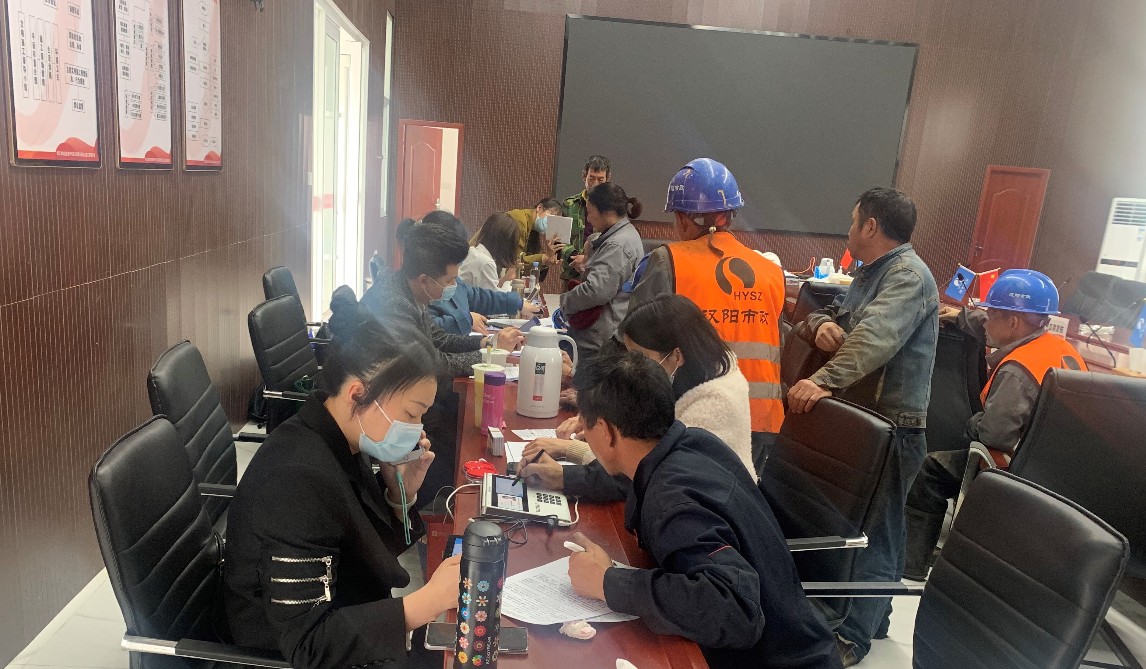 為規(guī)范農(nóng)民工工資支付行為,保障農(nóng)民工按時足額獲得工資報酬,2019年12月4日,國務(wù)院第73次常務(wù)會議通過了《保障農(nóng)民工工資支付條例》(以下簡稱《條例》),2020年5月1日起施行。鐘鑫公司積極落實《條例》規(guī)定,堅決維護(hù)農(nóng)民工勞動報酬權(quán)益,開設(shè)農(nóng)民工專戶,進(jìn)行農(nóng)民工工資代發(fā)。公司財務(wù)部于近日特邀請中國建設(shè)銀行漢陽支行副行長一行6人親臨19.5標(biāo)項目部設(shè)立“暖心工地銀行”,為項目農(nóng)民工兄弟提供上門服務(wù),集中辦理個人工資卡,力將以人為本的理念貫徹到基層。