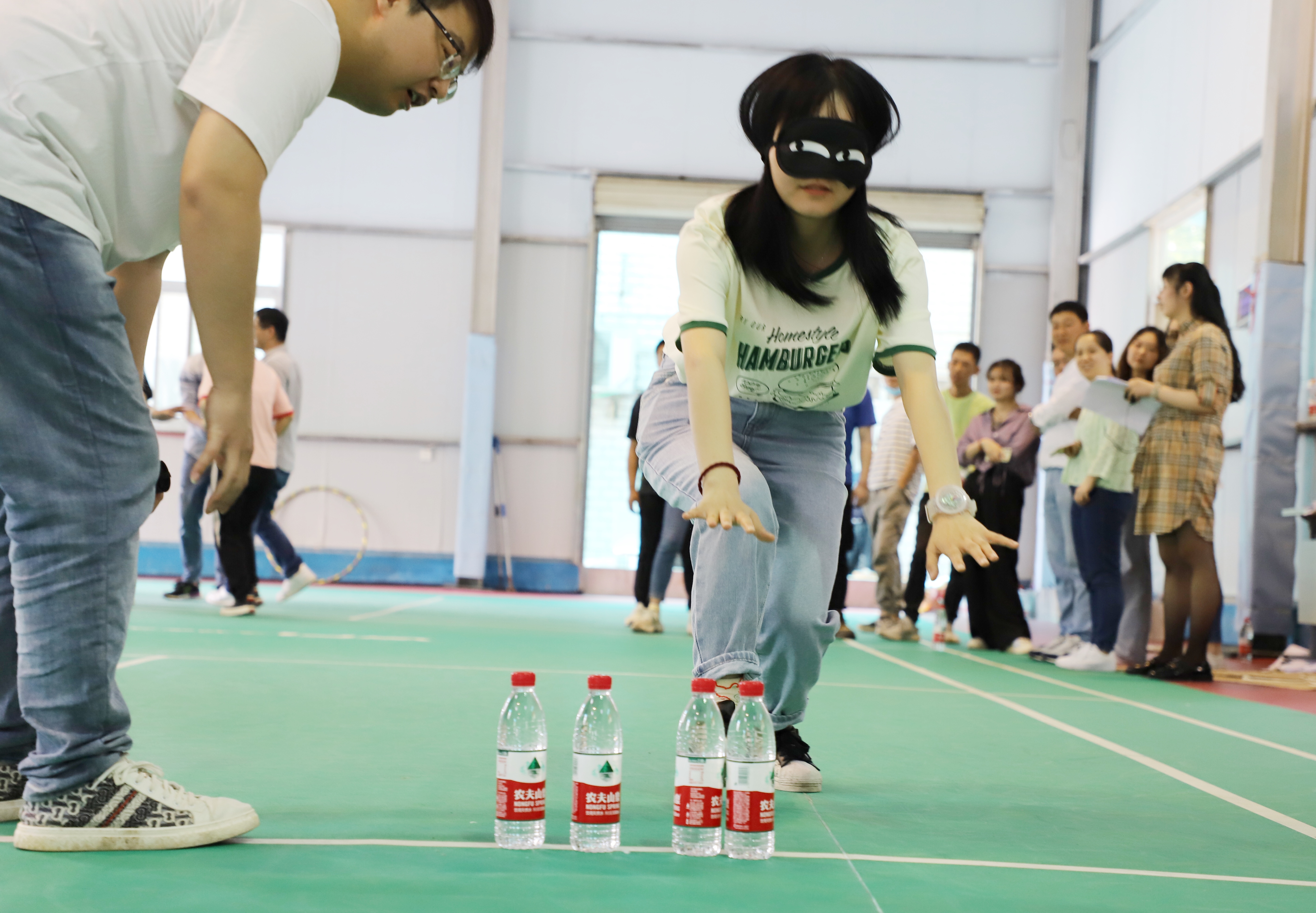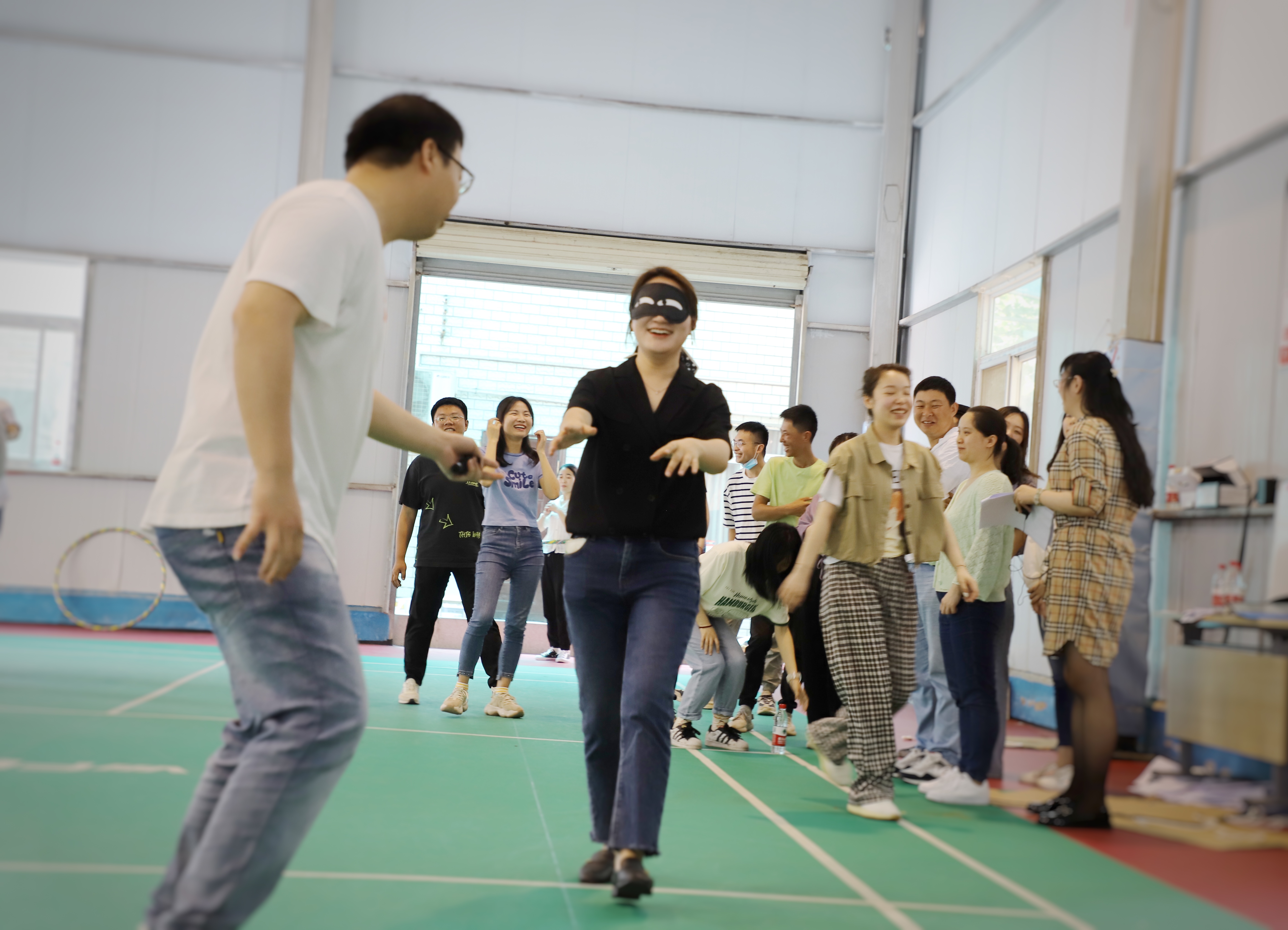 隨著“一心同力”環(huán)節(jié)中“蒙眼取物”比賽在此起彼伏的歡呼聲中激烈進行,活動進入高潮,對戰(zhàn)隊員精神振奮,在同組隊員的正確指揮下,蒙眼在最短時間獲取目標物品,大家紛紛精神抖擻,為挑戰(zhàn)自我而前進,為集體榮譽而拼搏。