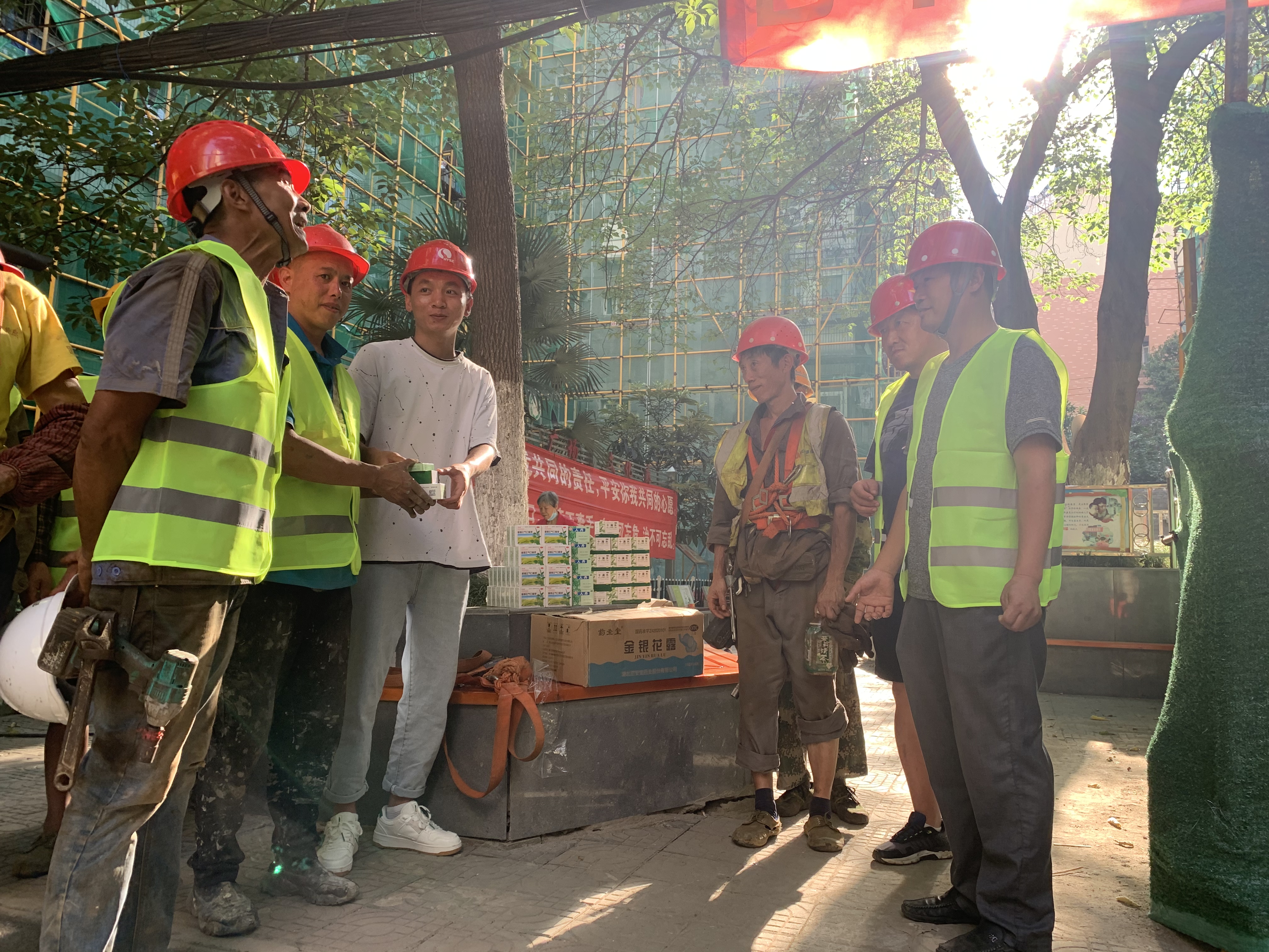 持續(xù)近40度的高溫天氣對一線建設(shè)者而言是一場體力和毅力的考驗。為保證高溫天項目安全作業(yè),鐘鑫公司在各項目啟動夏季施工防暑降溫措施,通過召開班組會議,及時調(diào)整施工計劃,靈活搶抓工期,在做好工人勞動保護(hù)的同時,全力確保項目順利推進(jìn)。各項目盡量避開中午時間,利用早上和下午時間緊抓工期,還為一線施工人員準(zhǔn)備鹽汽水、藿香正氣水、涼茶、酸梅湯等防暑降溫食品、藥品,保證項目一線員工擁有絲絲清涼。