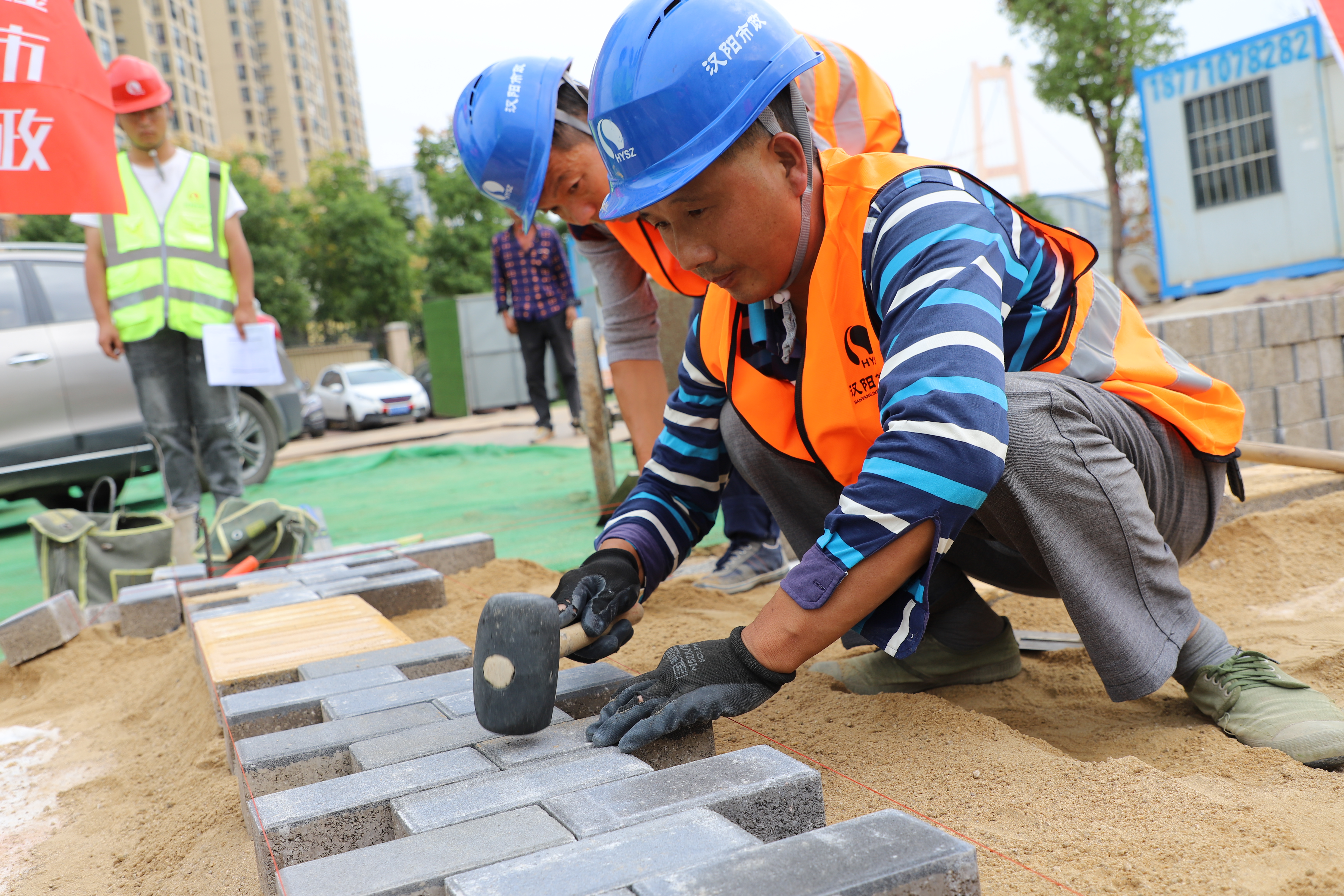 鐘鑫公司負責改造的漢陽區(qū)老舊小區(qū)(三期)改造項目新五里后堤小區(qū)現(xiàn)場彩旗隨風飛舞,各項目精選隊伍齊聚一堂,為取得人行道步磚鋪裝專項技能比武大賽的勝利做最后的準備。